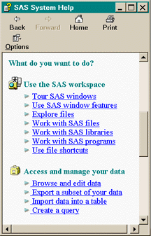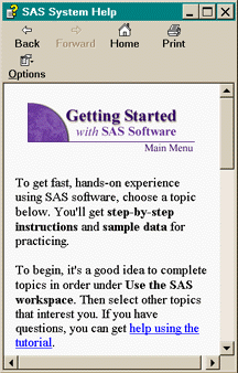 SAS Software" tutorial. The "Use the SAS Workspace" tutorial is particularly